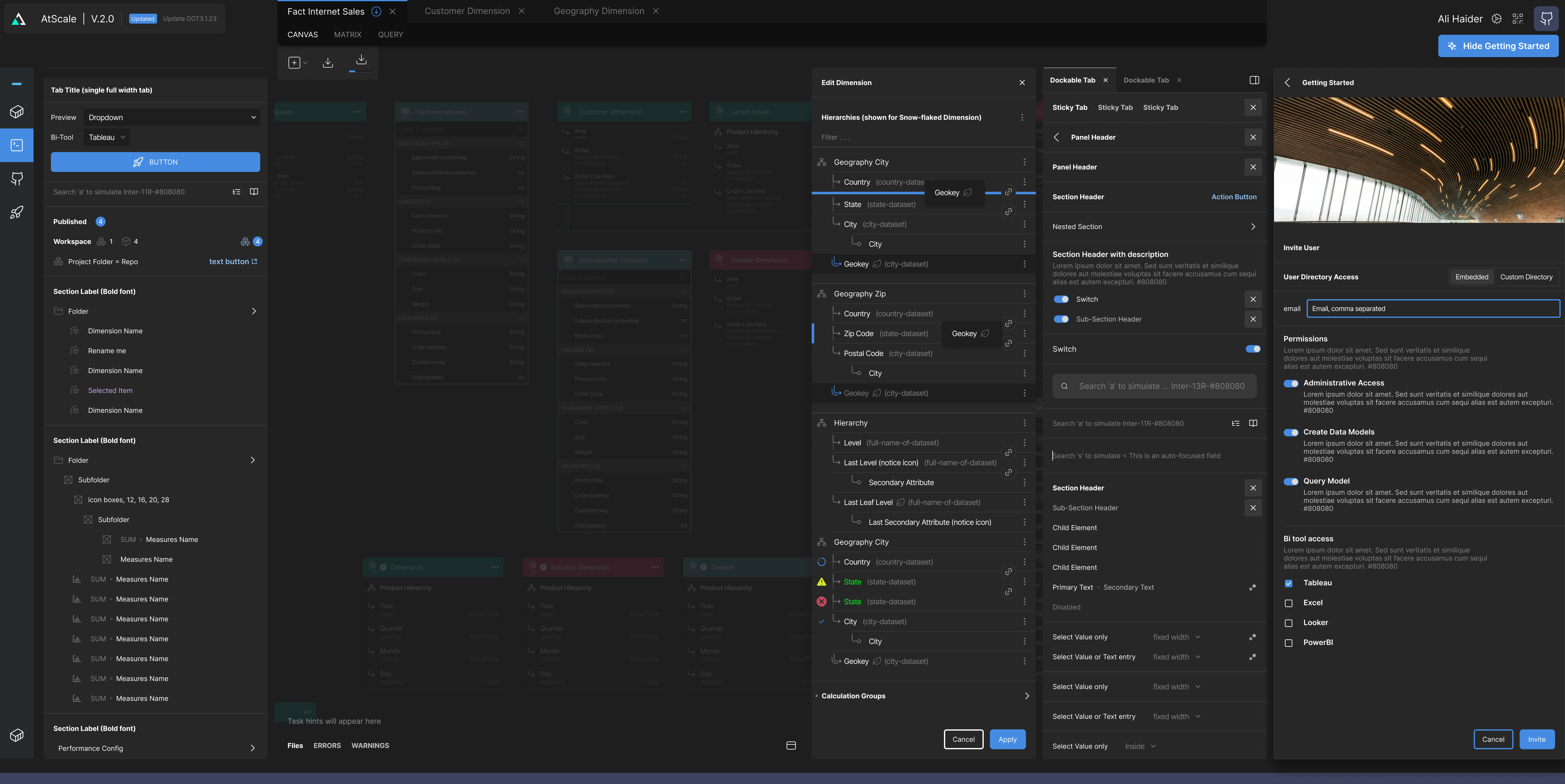 AtScale | Data Modelling Application Interface (various components)